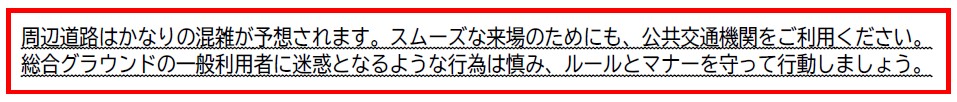 総合グラウンド周辺での乗降はご遠慮ください。