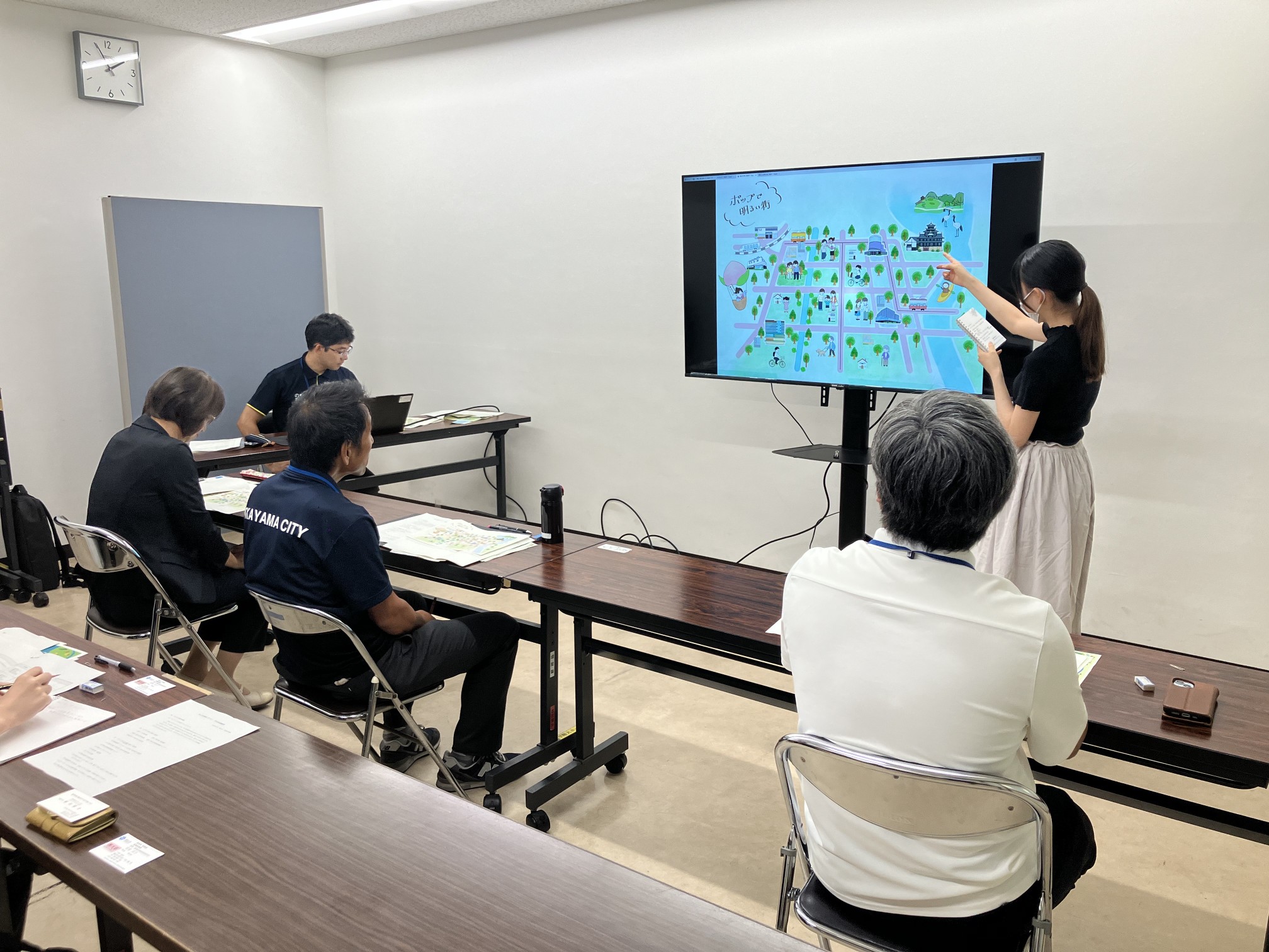 コミックイラスト学科の学生4名に参加いただき、岡山の中心市街地活性化に向けた様々な取り組みや、今後の整備予定等について学んでいただきました。