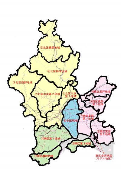 なお、東区東部第2地域については、一部をモデル地区(東区幸西地区)としています。