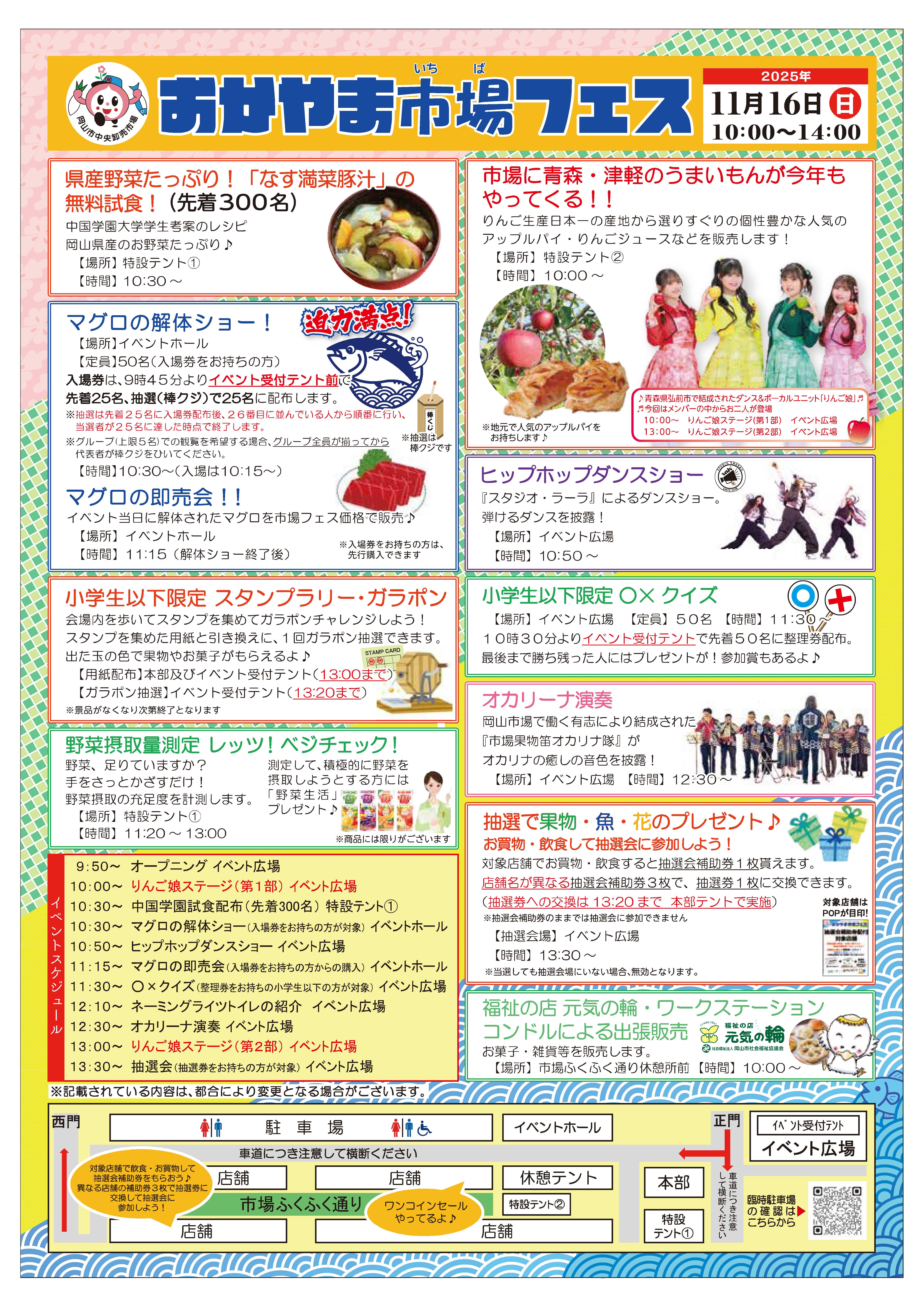 市場ふくふく通り内の店舗にて、おかやま市場フェスならではのお得な販売があります。