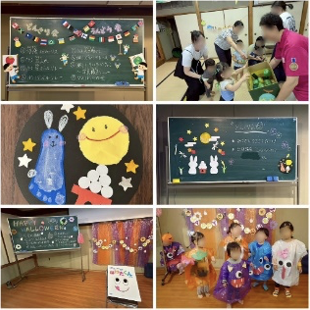室内活動では、子どもの身体計測、運動会、夏祭り、ハロウィン、リトミック、クリスマス会などをしています。