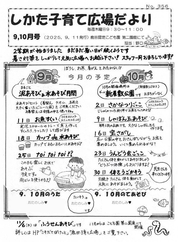 ◎屋外での活動です。帽子・着替え・お茶など各自ご用意ください。