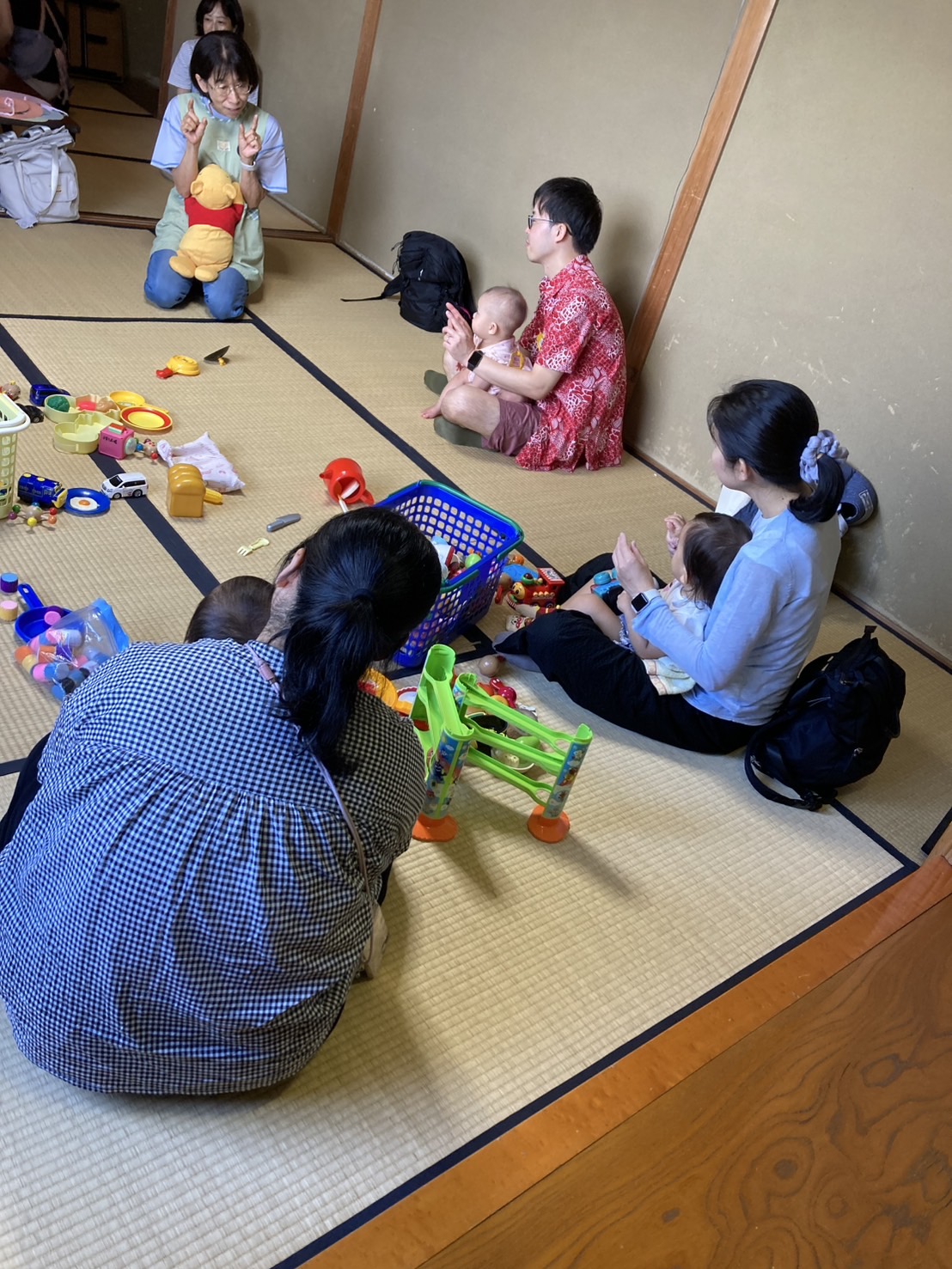 おもちゃでまったり遊んだ後、スタッフによる触れ合い遊びをしました。