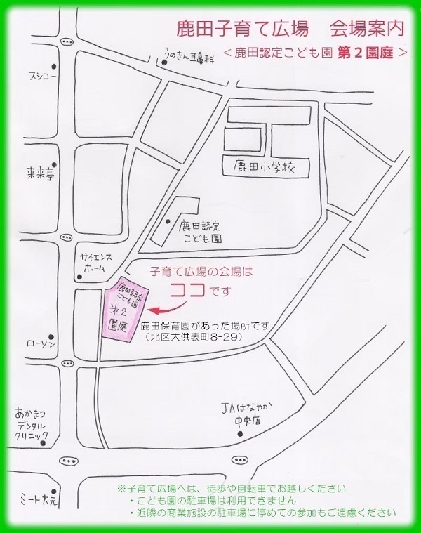 ◎学級閉鎖でお休み中のお子さんを連れての広場の参加はできません。