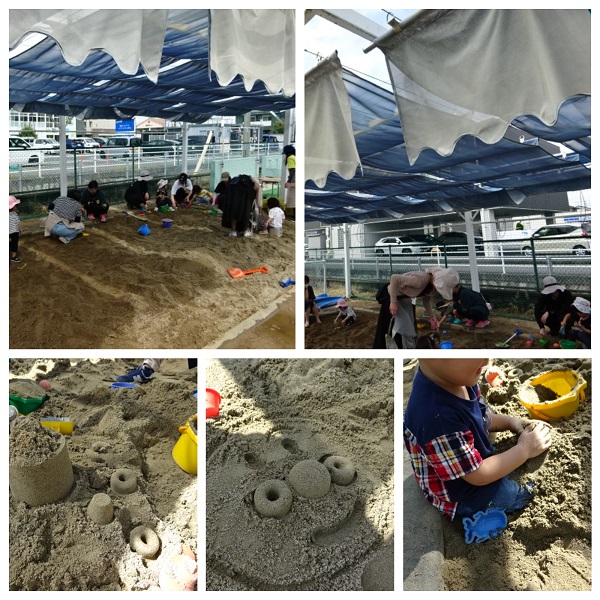 日よけの屋根がある砂場では、さわさわ~と涼しい風が吹くことも。