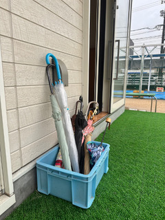 傘置き場も、レインコートかけも準備しました。