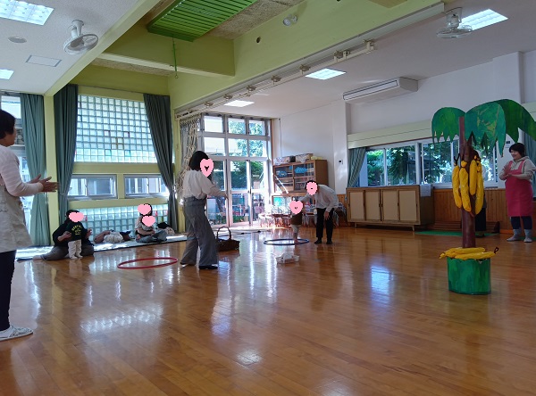 みんながおさるのお面をかぶって、バナナを収穫してもらいます(^^)