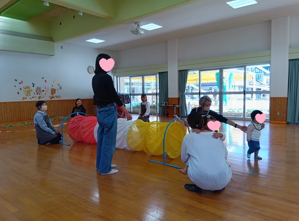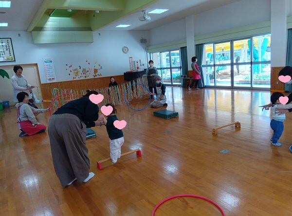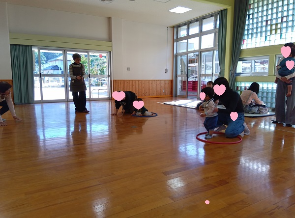 朝晩は寒いくらいになりましたね。日中はお外のお日様が温かく感じる今日の三勲子育て広場は、三勲幼稚園遊戯室をお借りして「運動会」です!