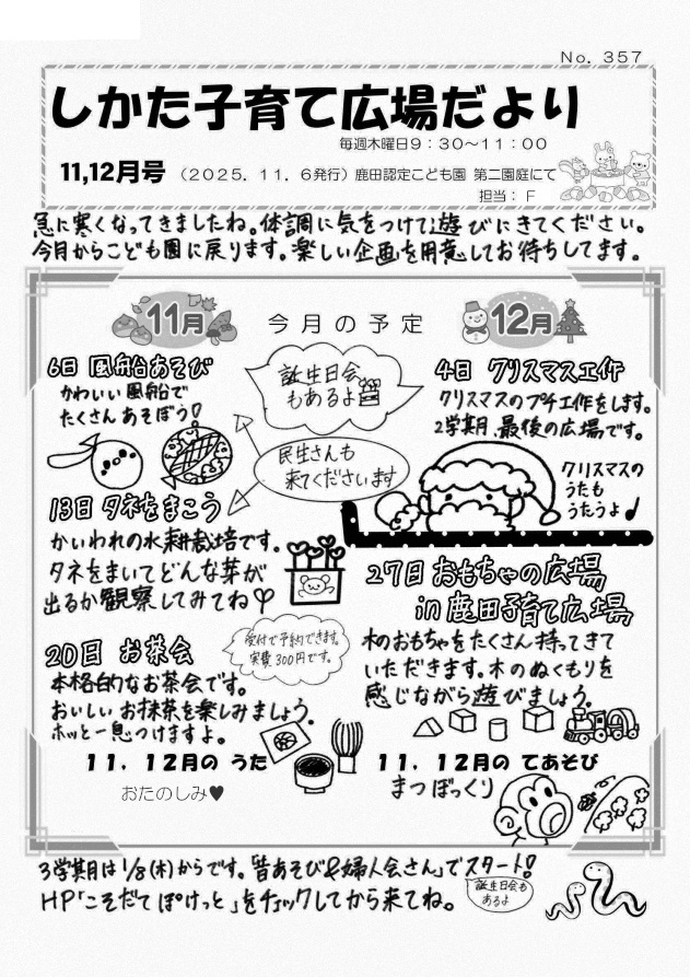 鹿田子育て広場の予定です。
