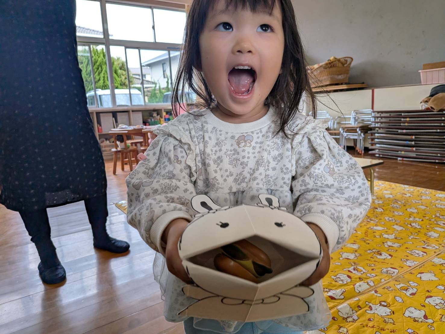 パックン人形が「パクッ」とすると、どうしても一緒に「パクッ」となってしまいます。