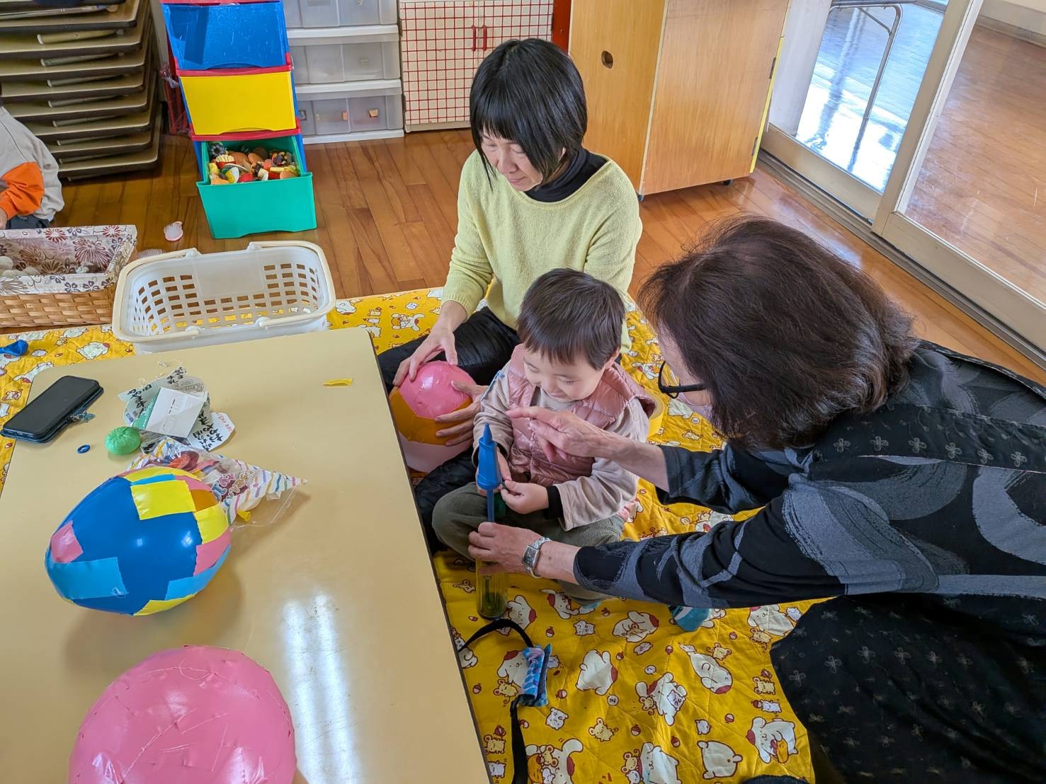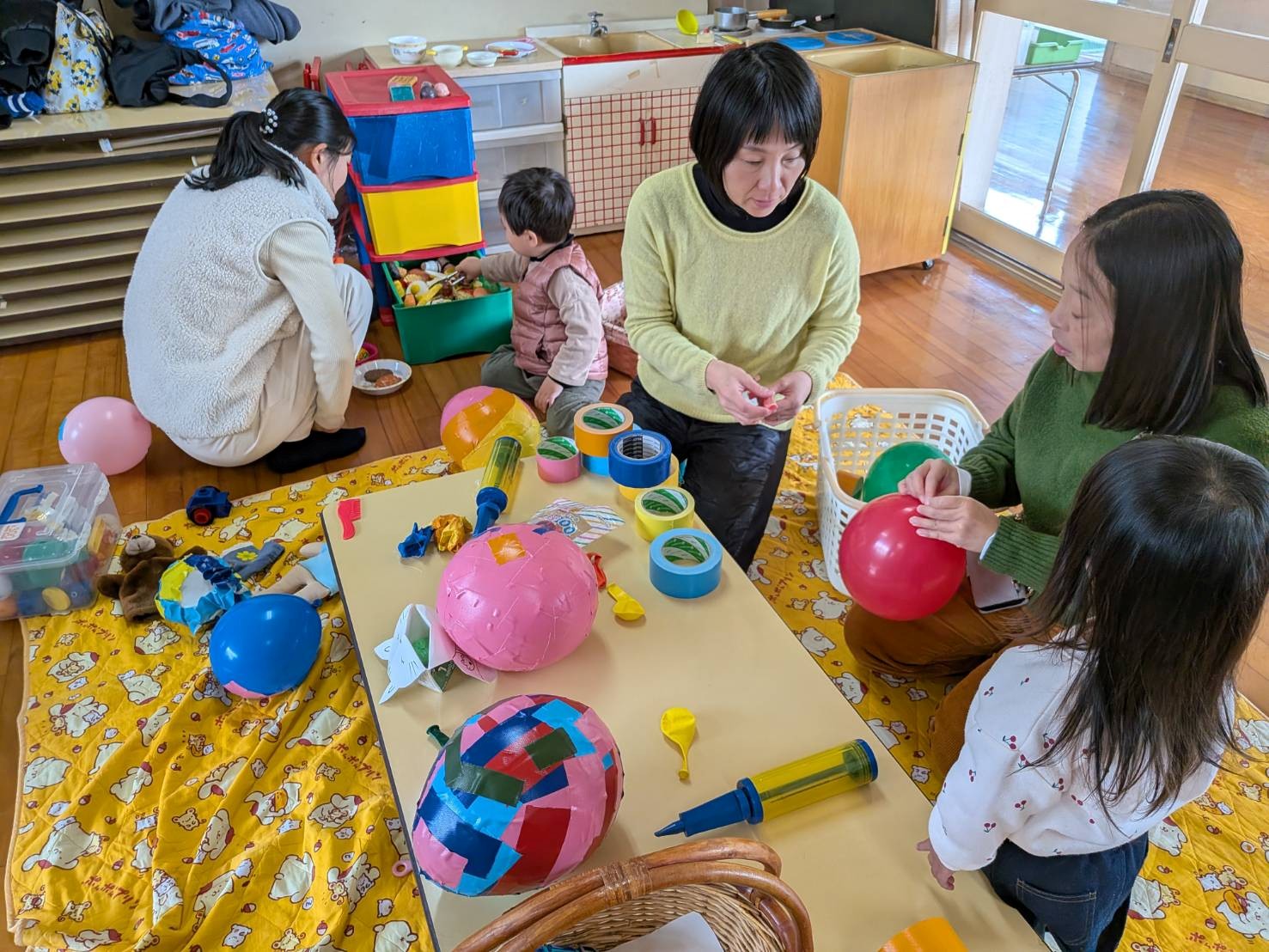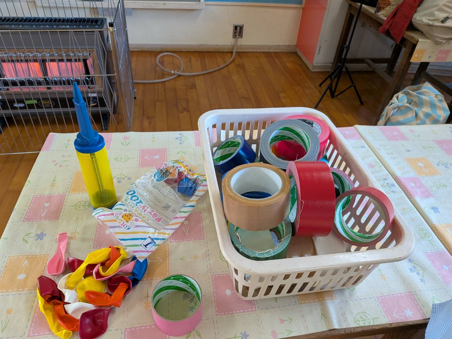 「風船のおへそのところをテープで押さえるらしいよ・・・」