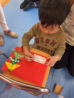 クリスマスにちなんだケーキ作りの手遊びをしましたよ。