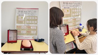 今日は触診モデルも持ってきていただき、参加者の方にも「しこり」を体験していただきました。