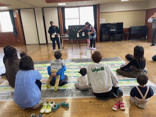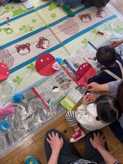 手遊び、リズム遊び、歌ダンス、パネルシアター、工作と盛りだくさんでした。おひなさまの歌詞が4番まであったことが驚きでした。