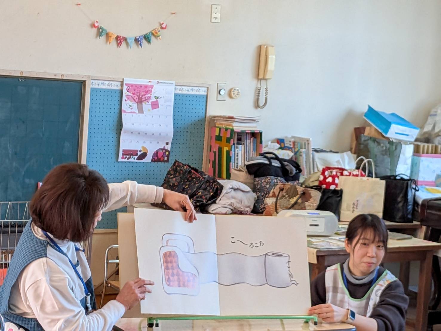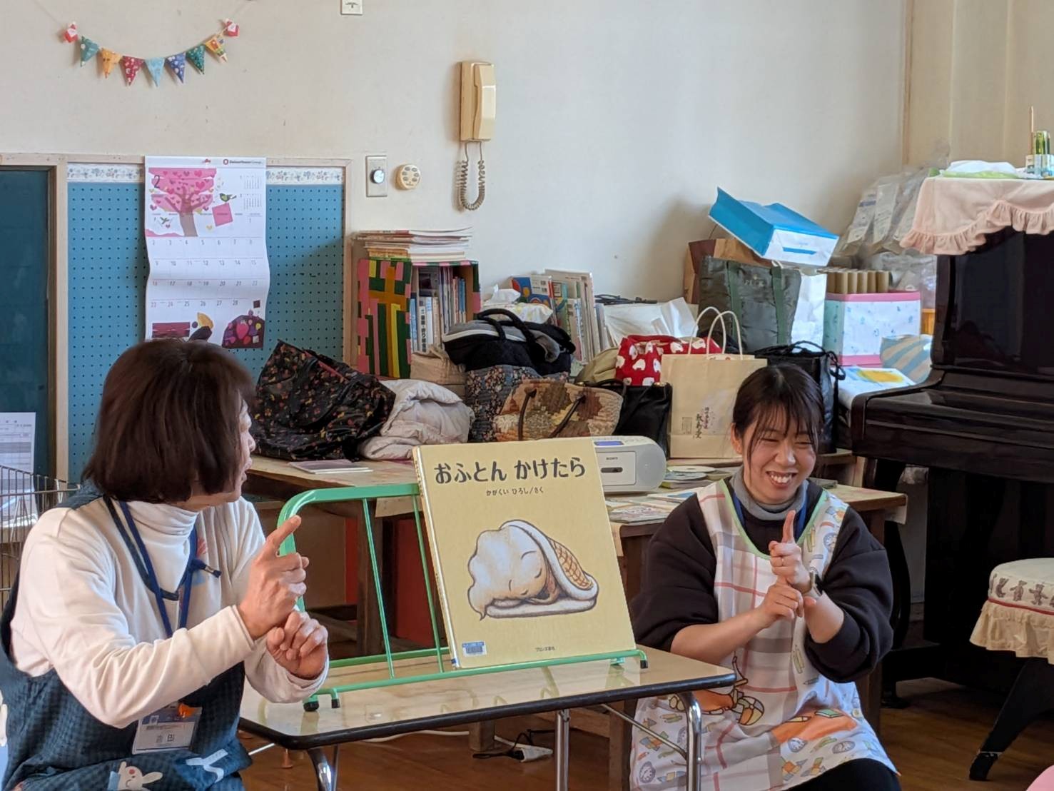 先生のやさしい語りかけや手遊びに、子どもたちはぐっと引き込まれ、広場は終始なごやかな雰囲気に包まれていました。