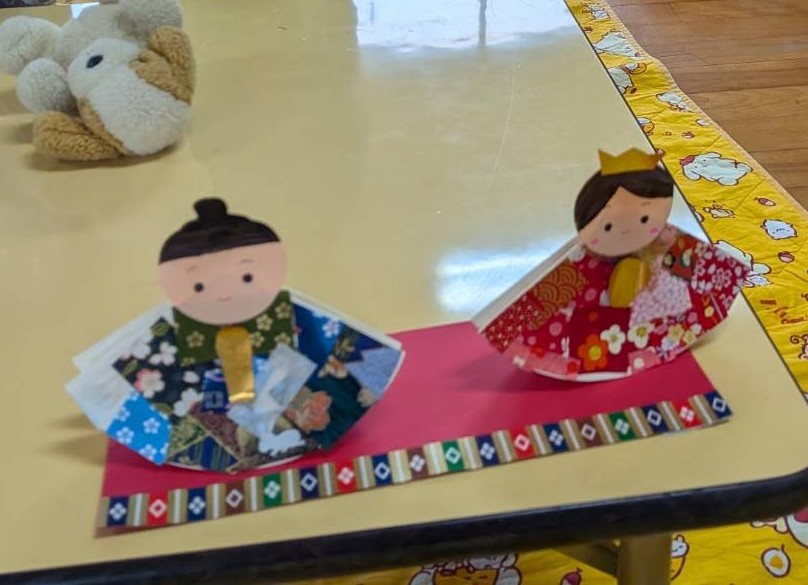 同じ材料でも、それぞれ表情の違うおひなさまが出来上がり、世界にひとつだけの作品が並びました。