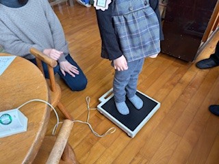 今日は、幼稚園から身長計と体重計を貸して頂いて、一人一人測りました。
