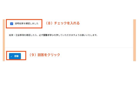- 画面の(8)にチェックを入れて、画面の(9)の回答をクリックして確認は終了になります。