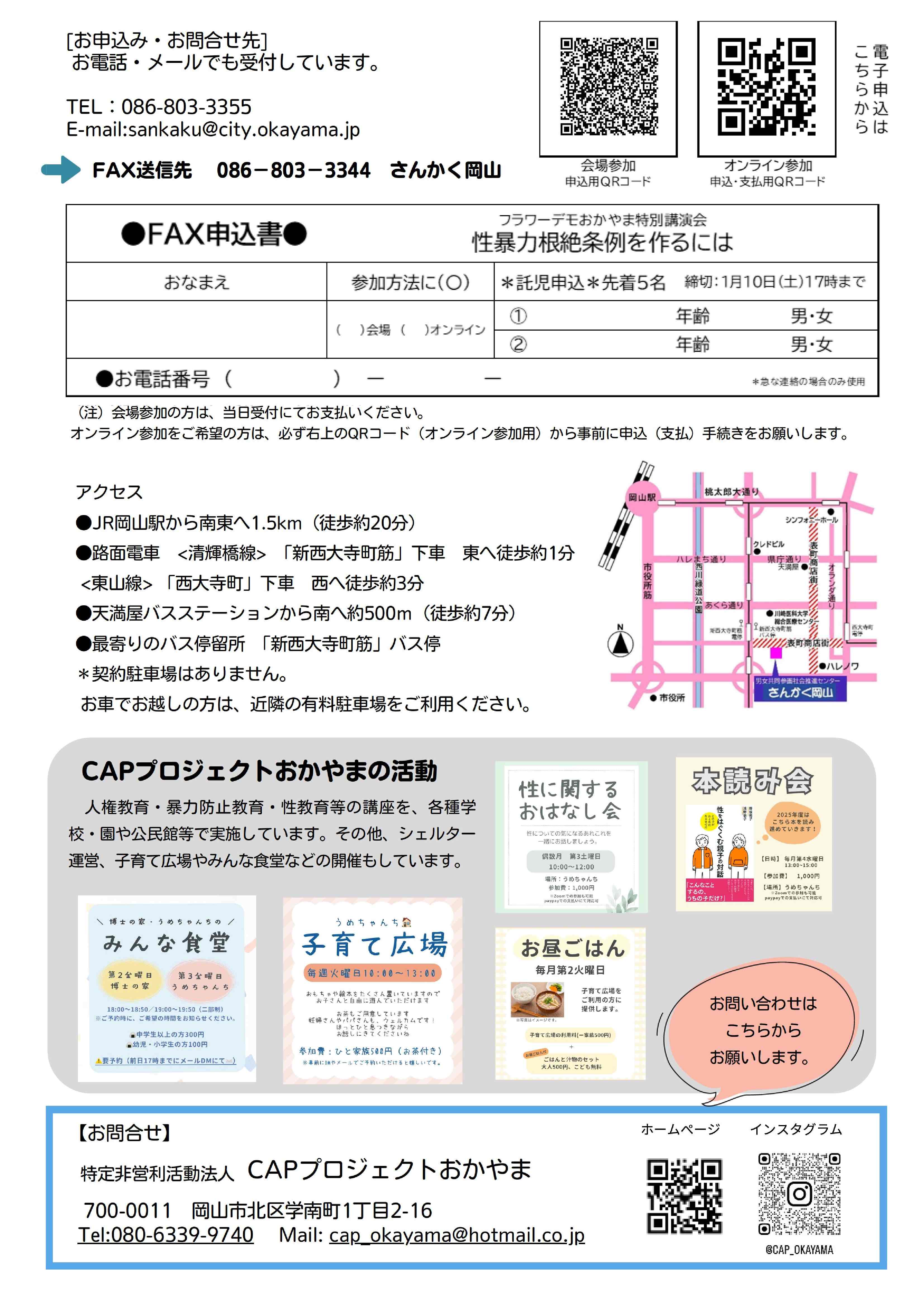 電話:086-803-3355 ファクス:086-803-3344所在地:〒700-0822 岡山市北区表町三丁目14-1-201号(アークスクエア表町2階)[地図]