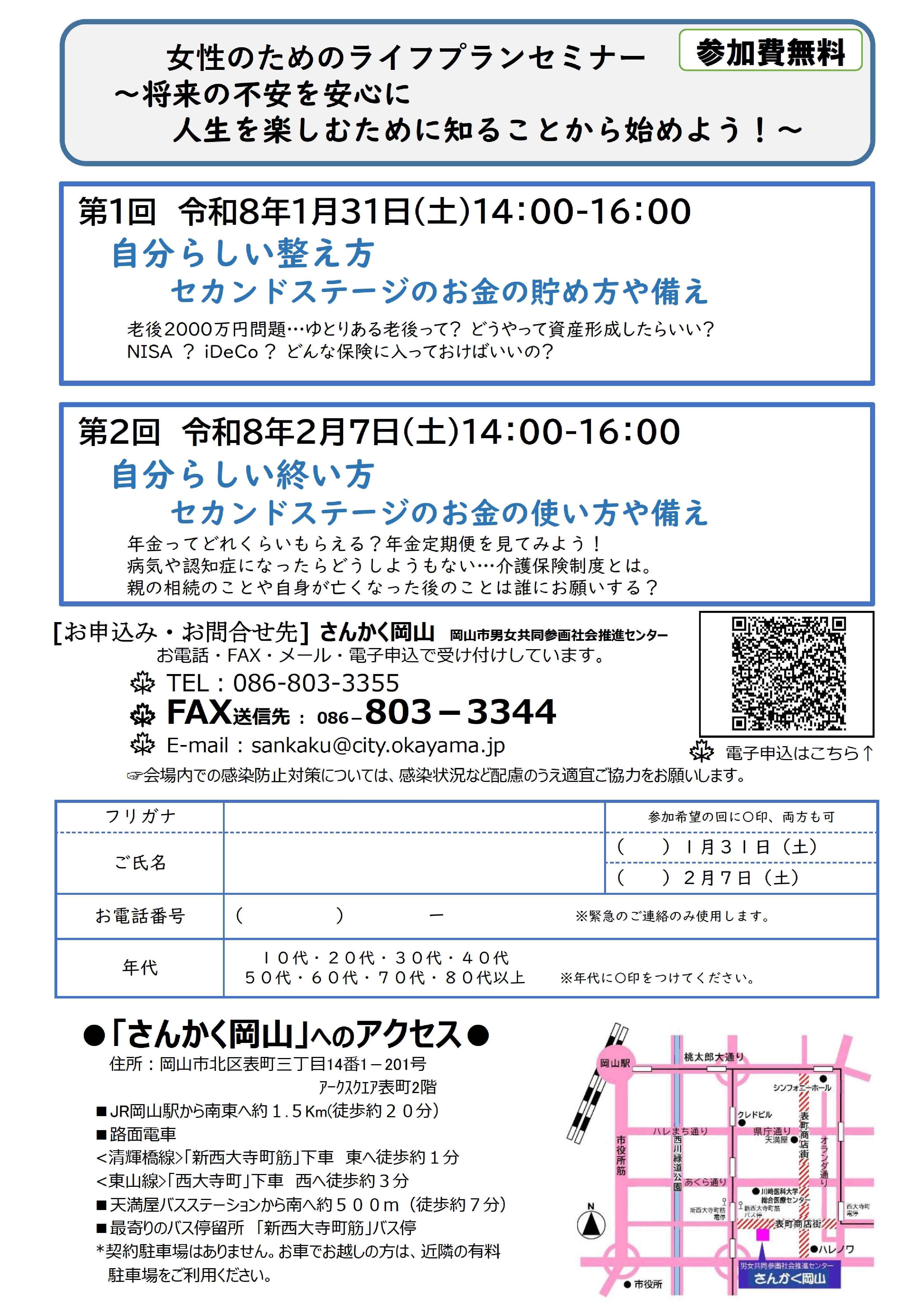 参加費を添えて、さんかく岡山窓口で直接お申し込みください。