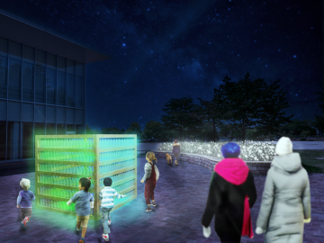 地域の子どもから大人まで、みんなで集めたペットボトルを使って光の参加型のオブジェを制作します。完成した作品を見に来ていただくことで再来場のきっかけになり、地域との繋がりも生まれる思い出が詰まったオリジナリティ溢れる光の空間にします。