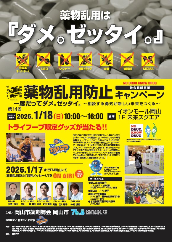 オーバードーズ・違法薬物の危険性・有害性を知ってもらうために、イオンモール岡山にてイベントを行いました。