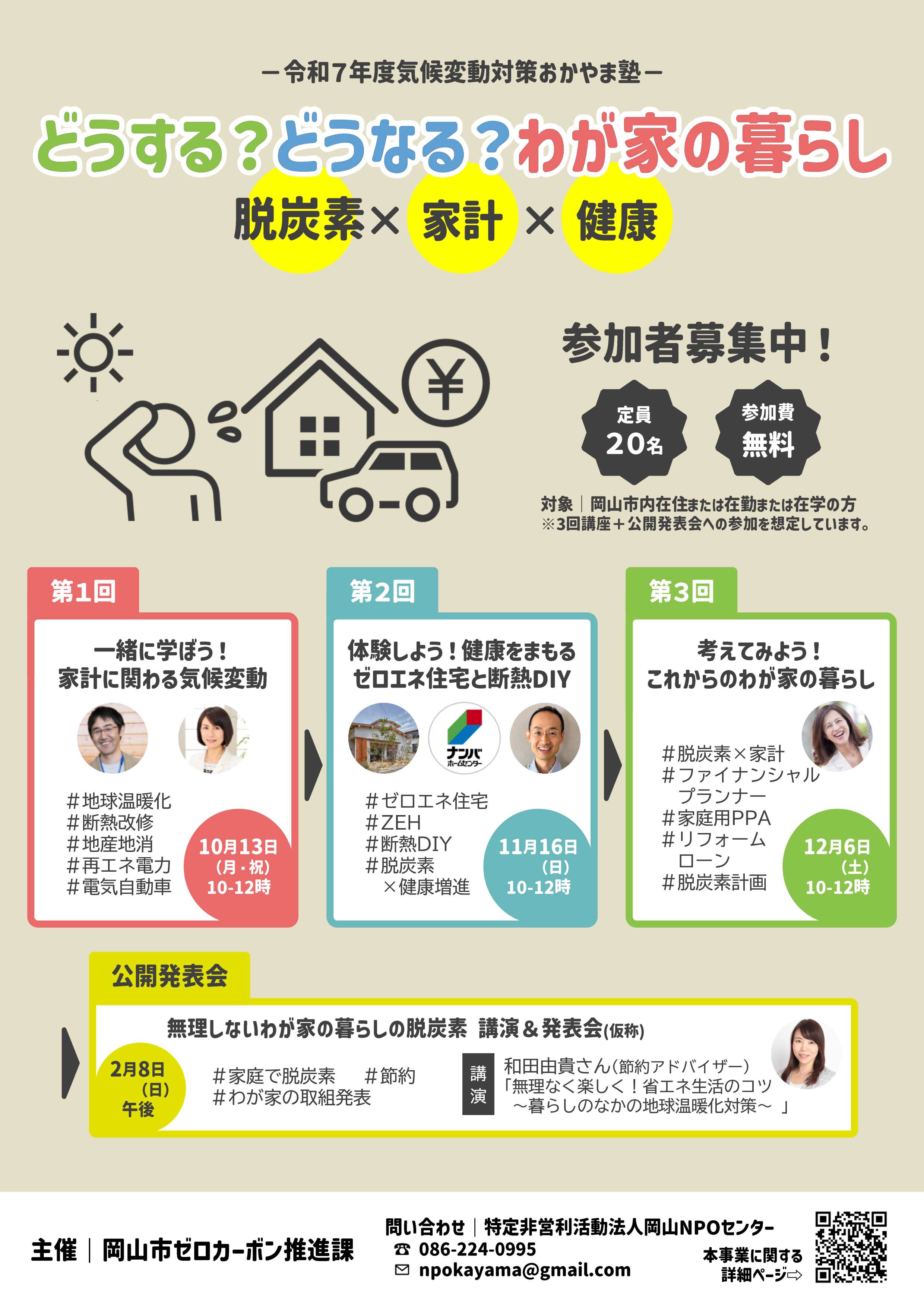 「気候変動対策おかやま塾」は、ゼロカーボンシティの実現に向け、地域における気候変動対策に積極的に関わる人材の発掘・育成を目的として実施しています。