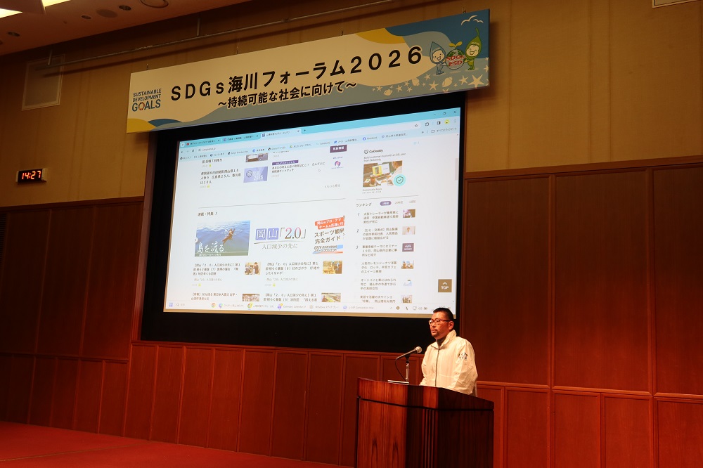 2026年2月7日(土曜日)、岡山市および岡山ESD推進協議会が主催する「SDGs海川フォーラム2026~持続可能な社会に向けて~」が岡山国際交流センターで開催されました。地域団体や企業、市民など様々な所属、幅広い年代の65名が参加し、美しい瀬戸内海を次世代に残そうと学び合い、私たちにできることを考えました。