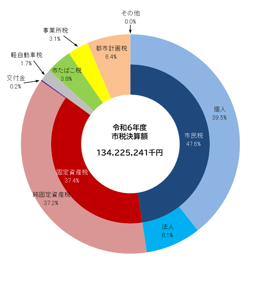 皆さんが納めていただいている市税の使いみちは、納めている税金1万円当たりで次のような割合となっています。(令和6年度決算)