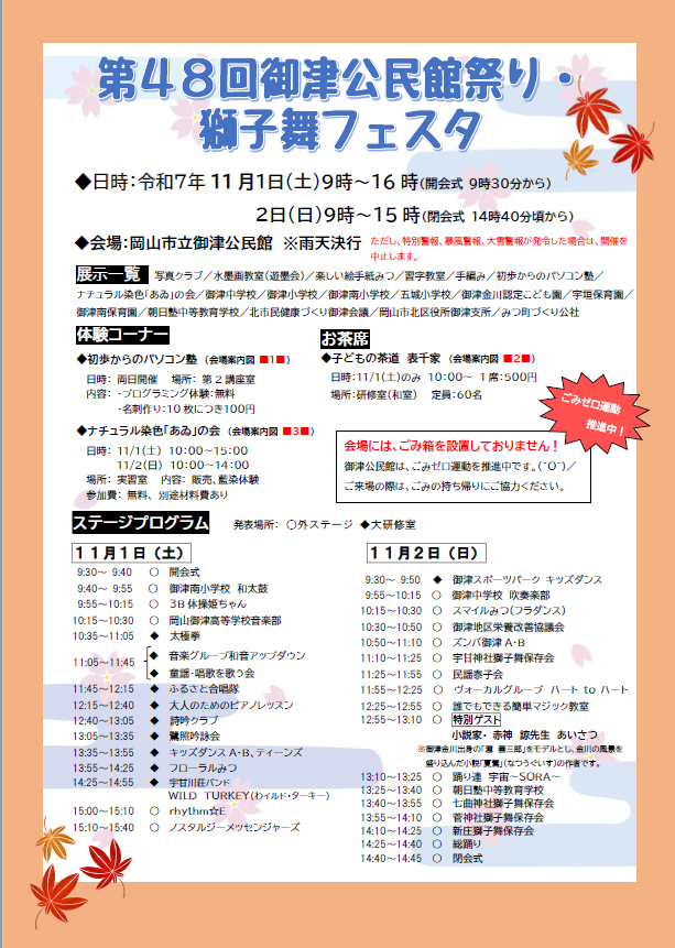 令和7年度御津公民館まつり・獅子舞フェスタのご案内
