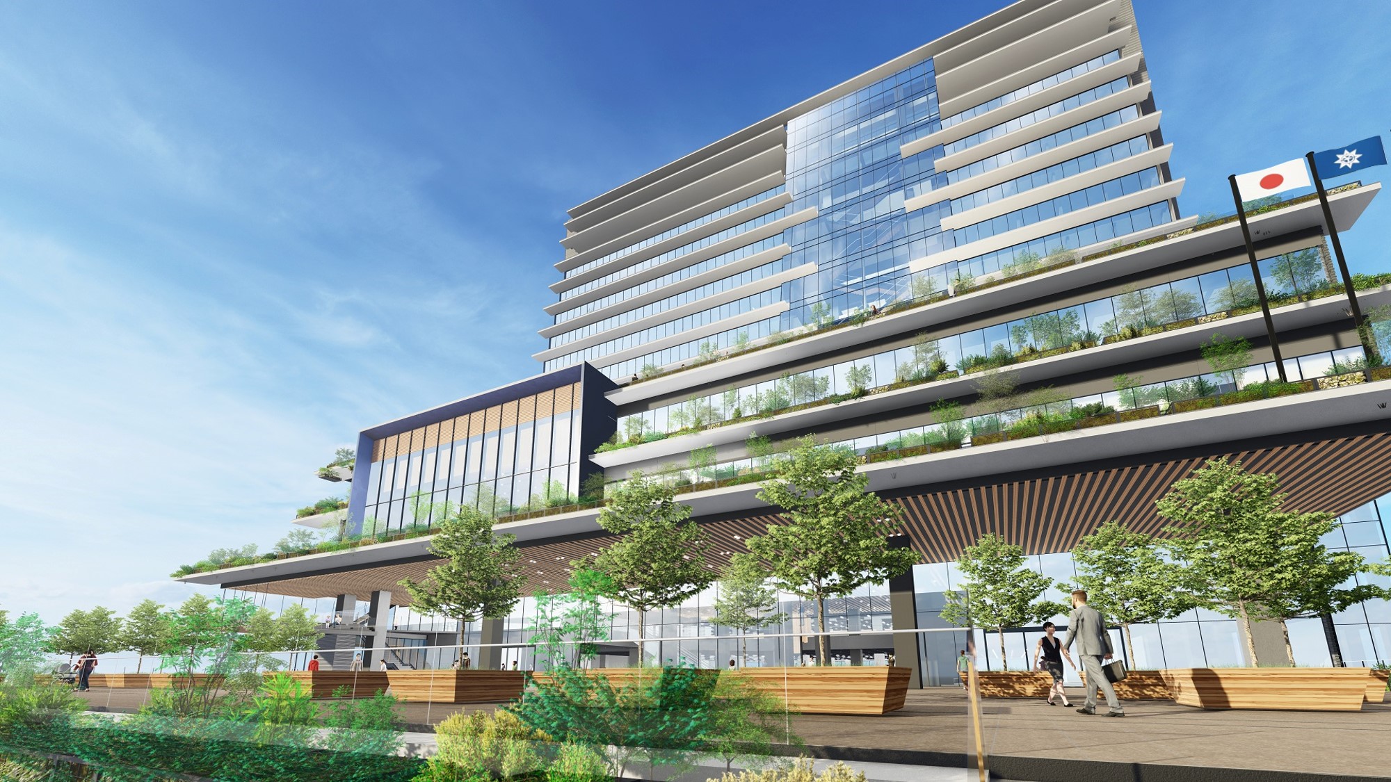 現在整備を進めている新庁舎が設計段階において、建築物省エネルギー性能表示制度(BELS)の最高ランクの5つ星を獲得すると同時に、「ZEB Ready(ゼブ レディ)」の認証を取得しました。延床面積が5万平方メートルを超える庁舎において、第三者評価機関による『ZEB』認証取得は、西日本で初となります。