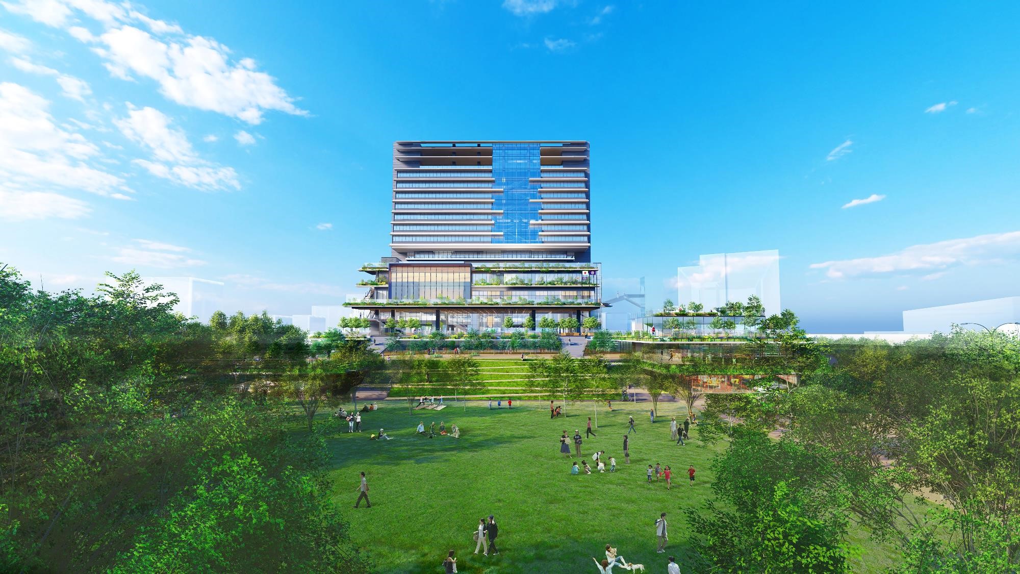 新庁舎周辺施設整備事業完成後の新庁舎のイメージ