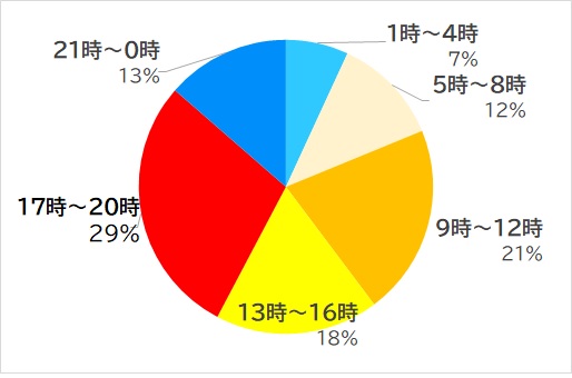 時間別の転落事故発生率