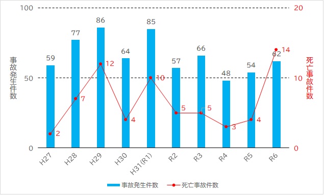 ※上記のグラフは平成28年8月から令和7年3月の、岡山市管理道路及び農道から転落した歩行者・自転車・二輪車などのデータを基にしています。