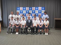 令和7年度 第33回全国中学生空手道選手権大会に出場する選手・関係者が、大森雅夫岡山市長を表敬訪問しました。