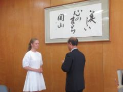 岡山みらいライオンズクラブが受け入れたモルドバ共和国の研修生ニコリ・ゴルブ氏とホストファミリーが、大森雅夫岡山市長を表敬訪問しました。