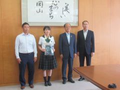 インターハイ卓球競技女子シングルスで優勝した山陽学園高等学校の面手凛選手が、大森雅夫岡山市長を表敬訪問しました。