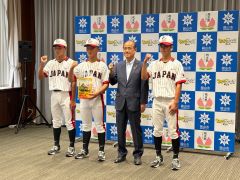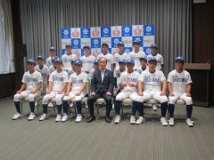 2025年度 JUNIOR ALL JAPANアメリカ遠征に選出されたオール岡山ヤング井澤佑馬選手、ヤンキース岡山Young古市匠磨選手、岡山ボーイズ村川雄政選手が、大森雅夫岡山市長を表敬訪問しました。