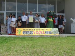 岡山市造山古墳ビジターセンターの来館者10万人達成記念セレモニーが開催され、大森雅夫岡山市長が出席しました。