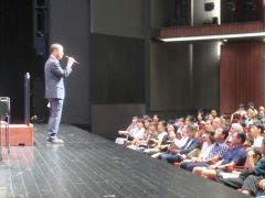岡山市子ども海外派遣事業の報告会が開催され、大森雅夫岡山市長が出席しました。
