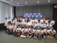 第13回ヤングリーグジュニア選手権大会に出場するオール岡山ヤングの選手・関係者が、大森雅夫岡山市長を表敬訪問しました。