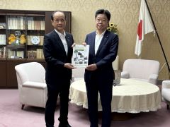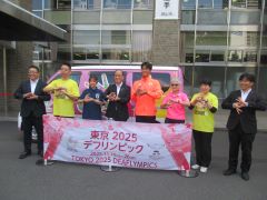東京2025デフリンピックPRのため、キャラバンカーと岡山県在住の日本代表選手・監督等が岡山市役所を訪れ、大森雅夫岡山市長が激励の挨拶を行いました。