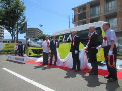 支線バス「FLAt」車両のお披露目式典が開催され、大森雅夫岡山市長が出席しました。