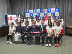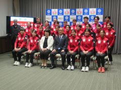 ホッケー女子日本代表「さくらジャパン」が岡山市ほかで強化キャンプを行うにあたって歓迎式が開催され、大森雅夫岡山市長が出席しました。