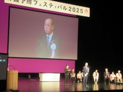 介護予防フェスティバル2025にて、岡山市介護予防活動功労者表彰式が行われ、大森雅夫岡山市長が表彰状を授与しました。