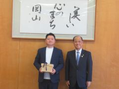 第36回伊藤園お~いお茶新俳句大賞において、金子兜太賞を受賞された矢野啓介さんが大森雅夫岡山市長を表敬訪問しました。