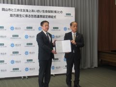 三井住友海上あいおい生命保険株式会社との地方創生に係る包括連携協定の締結式が開催され、大森雅夫岡山市長が出席しました。