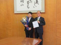 第59回ブザンソン国際若手指揮者コンクールで優勝した米田覚士氏が、大森雅夫岡山市長を表敬訪問しました。