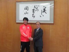 第104回全国高等学校サッカー選手権大会に出場する、岡山学芸館高等学校サッカー部の選手・関係者が、大森雅夫岡山市長を表敬訪問しました。