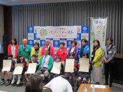 ベジ・ファーストOKAYAMAプロジェクト「野菜を食べよう!小学生ポスター展」表彰式が行われ、大森雅夫岡山市長が出席しました。